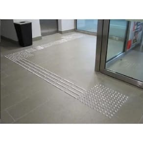 Piso Tátil Elemento Direcional Inox Aplicação: Dupla Face O Piso Tátil é utilizado em espaços públicos/privados para orientação de deficientes visuais.Material Fabricado: PVC revestido com aço inox Modelo: Alerta bolinhas e Direcional faixinhas Cores: Natural Inox . Acompanha gabarito para fácil instalação. Marca: Lagge