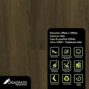O Piso vinílico em régua Office cor Catedral, possui 3mm de espessura total e capa de uso de 0,55mm. O material é produzido em 100% PVC. O uso do piso é recomendado para ambientes comerciais e residenciais. Caixa: 3,25 Unidade Acabamento: Rústico Acompanha Manual de Instalação: Não Ambiente Principal: Comércio Ambientes Recomendados: Área Comercial/Área Residencial Aparência: Madeira Capa de Uso de PVC: 0,55 mm Comprimento: 124 cm Cor: Catedral Cor do Produto: Catedral Cor Predominante: Marrom Escala de Brilho: Baixo Brilho Largura: 20 cm Linha: Office Linha ou Coleção: Office Manual de Montagem e Instalação: https://product-hub-prd.madeiramadeira.com.br/650704854/documents/7024016b-56cc-4c37-911c-cbf8b78bf6c5290106593917464539800593.pdf Marca: Casa Grassi m² por caixa: 3,25 m² Origem do Produto: Importado País de Origem: Importado Permite Reutilização: Não Peso: 5,692 kg/m² Recomendações de Uso, Manutenção e Limpeza: Utilize uma solução de detergente neutro com o mínimo de água possível, após remova com pano limpo até a completa secagem do piso. Proteja os pés dos móveis com feltro e evite arrasta-los. Evite a exposição do piso ao sol constante. Resistência ao Fogo: Sim Tipo de Contrapiso: Cimento e Cerâmica Tipo de Instalação: Colado Tipo de Piso Vinílico: Régua Tom de cor: Escuro Marca: Casa Grassi