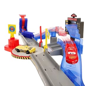A pista é projetada para carros da linha Disney Pixar Cars. Verifique a compatibilidade do tamanho dos seus outros veículos.