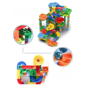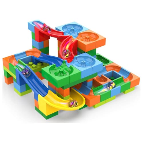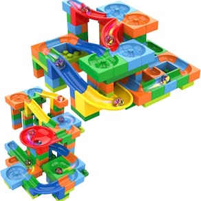 Com peças coloridas e de diferentes formas, permite montar variados modelos de pistas para que as bolinhas de gude corram por todo o caminho!