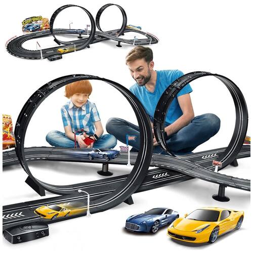 Este conjunto de pista de corrida de caça níqueis elétrico inclui 2 carros de cores diferentes, sendo perfeito para pilotos iniciantes e crianças mais novas desenvolverem habilidades de corrida em uma velocidade mais lenta. O loop e a curva flyover são resistentes e fáceis de montar, com peças de fundação que ajudam a estabilizar a pista e paredes para as curvas que evitam que os carros saiam da pista. Os carros são bem detalhados e fáceis de manusear, com 2 tipos de método de operação manual e elétrico. O restritor de velocidade mantém uma velocidade perfeita para completar o loop e não ir muito rápido nas curvas, enquanto o botão de reforço elétrico adiciona um pouco mais de pressão nas retas. Este é um emocionante jogo para dois jogadores, aproveitando a corrida de ação em ritmo acelerado para vencer e depois fazê-lo novamente É possível expandir as opções de corrida para horas de diversão, usando conjuntos de expansão de pista, acessórios e uma ampla seleção de carros adicionais para criar novas corridas desafiadoras