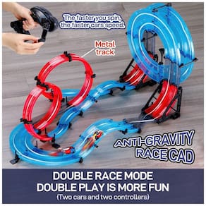 A estabilidade do carro de corrida é garantida pelo design magnético da pista, o que impede que o carro saia da pista. O conjunto inclui 164 carros, 2 veículos e 2 reguladores de controle de velocidade que utilizam 2 pilhas AAA não inclusas . O carro tem uma bateria de íon de lítio de 3,7 V embutida e vem com 1 fio de carregamento USB e instruções para 1 x loop de montagem. Este conjunto é indicado para crianças a partir de 6 anos e é feito de plástico ecológico, seguro e não tóxico. A montagem é fácil e divertida, com instruções claras e peças de pista curvada.