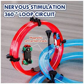 Este é um carro de pista de montagem com levitação magnética, que possui alta velocidade e direção de 360 graus. Ele vem com uma engrenagem de 4 níveis e uma engrenagem traseira de 2 níveis, além de controle de velocidade de agitação, o que ajuda a melhorar a interação entre pais e filhos, treinamento prático e habilidades de controle. O quebra cabeça de iluminação também é uma característica interessante deste brinquedo. É possível comprar o mesmo modelo para sobrepor e atualizar a montagem, criando uma forma personalizada.