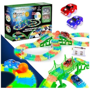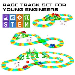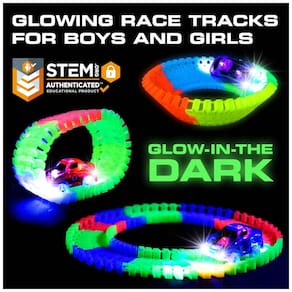 Essa pista de corrida é perfeita para crianças que adoram jogos de construção STEM. Composto por 360 peças de pistas de neon intercambiáveis, as crianças podem construir pistas personalizadas em segundos. O conjunto inclui 2 carros de corrida de LED, 2 bolas trax, 1 ponte, 2 estruturas de inclinação, 1 interseção e sinais de trânsito. As pistas e os carros brilham no escuro, o que torna a brincadeira ainda mais emocionante. Além disso, as pistas são fáceis de montar e desmontar, podendo ser facilmente armazenadas e transportadas. Este conjunto de brinquedos educativos e envolventes é feito com materiais não tóxicos e de alta qualidade, e é adequado para crianças a partir de 3 anos. As pistas flexíveis e dobráveis incentivam a criatividade e a imaginação, além de ajudarem a desenvolver habilidades motoras, habilidades de pensamento, habilidades de resolução de problemas, trabalho em equipe e cooperação. É um conjunto desafiador e igualmente divertido para crianças.