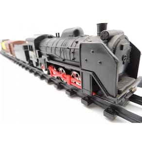 Contém: 10 curvas, 5 retas menores, 1 comando de alavanca, 1 desvio longo esquerdo, 1 desvio longo direito, 1 desvio curto, 4 retas maiores, 5 postes (conjunto de 3 peças), 1 sinaleiro com escada, 1 sinaleiro sem escada, 1 para-choque, 1 conjunto de desengate dos vagões, 1 locomotiva modelo a vapor, 1 carvoeiro (Tênder), 1 vagão cargueiro, 1 vagão tanque, 1 cartela de adesivos e 1 manual de instruções.