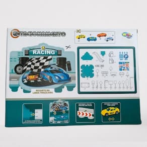 Embalagem: altura 6 cm x Largura 22 cm x Comprimento 30 cm x Peso: 0,290g Brinquedo Monte Estacionamento e Garagem Corrida - 1 Estacionamento / Garagem - 2 Carros de Corrida - 40 Peças no total Marca: Não Informado Ean: 7899527160327