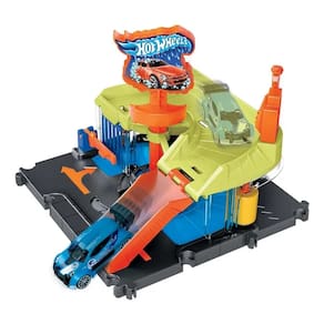 Ao lutar contra as criaturas tóxicas, todo carro precisa de uma boa limpeza no Hot Wheels City Downtown Express Car Wash Playset antes de enfrentar mais aventuras. Os detalhes legais do jogo push-around aumentam o realismo e a diversão! As crianças giram o sinal do logotipo e os carros rolam automaticamente pela lavagem que inclui um rolo de espuma e abas de secagem para uma cobertura completa. O conjunto inclui 1 carrinho de brinquedo Hot Wheels para brincar e se divertir imediatamente. Conecte o conjunto de lavagem de carros Hot Wheels City Downtown Express a outros conjuntos para construir um mundo único de diversão e aventura, com recursos interessantes que aumentam a diversão! Cada conjunto vendido separadamente.