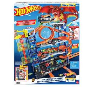 Explore todos os quatro níveis de corrida, acrobacias e narrativa na Hot Wheels City Ultimate Garage. Cada nível inspira aventuras de pista, incluindo corridas lado a lado, acrobacias em loop e uma batalha épica com um dragão comedor de carros. O conjunto vem com dois veículos Hot Wheels e tem estacionamento suficiente para mais de 50 carrinhos de brinquedo em escala 1:64. Ele também se conecta a outros conjuntos para que as crianças possam construir sua cidade Hot Wheels.