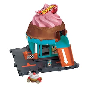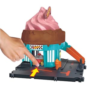 Delicie-se brincando com as pistas do conjunto Hot Wheels Sorveteria Na Cidadel. O conjunto em forma de cone de sorvete conta com um elevador movido pela criança que gira os carros para cima, pelo sorvete e até a rampa dobrável para aventuras ainda mais deliciosas. O brinquedo inclui um carro Hot Wheels e se conecta a outros conjuntos. Passe pelo desviador de placas e entre no cone e, em seguida, gire o logotipo Hot Wheels para mover o carro Hot Wheels pela pista em espiral e desça a rampa para mais aventuras.