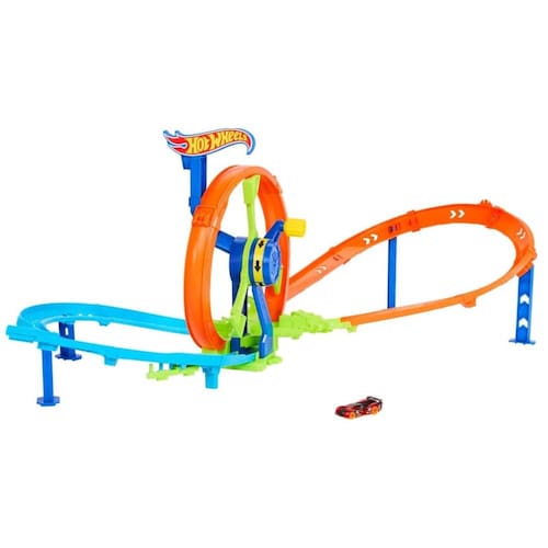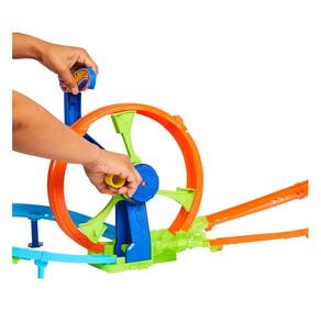 Você pode aumentar a emoção adicionando mais carros que terão de desviar do laçador da lâmina e de outros carros na zona de colisão As crianças a partir de 4 anos de idade vão adorar a prova de acrobacias, impulsos e batidas com seus Hot Wheels nesse conjunto