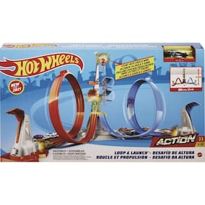 O conjunto inclui uma pista e um carrinho, perfeito para crianças de 05 a 10 anos. Com ele, os carros correm em alta velocidade ao longo das pistas e atravessam um loop impressionante que os leva até uma gaiola que pode alcançar até 60cm no ar. É pura adrenalina!
