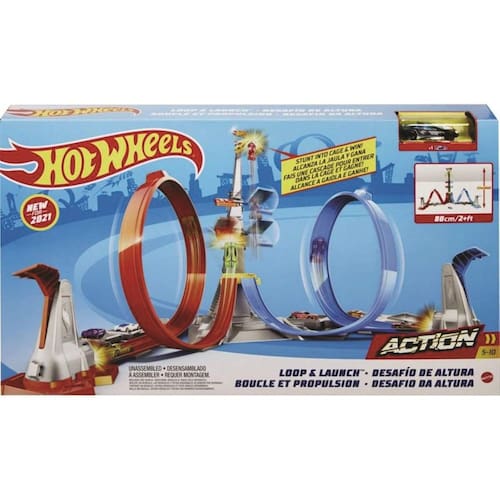 O conjunto inclui uma pista e um carrinho, perfeito para crianças de 05 a 10 anos. Com ele, os carros correm em alta velocidade ao longo das pistas e atravessam um loop impressionante que os leva até uma gaiola que pode alcançar até 60cm no ar. É pura adrenalina!
