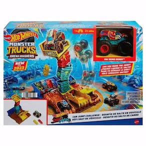 As crianças demonstram suas habilidades para esmagar e chocar os Monster Trucks com esta coleção de conjuntos baseados em desafios que dominam com seus Monster Trucks Cada conjunto vem com um Hot Wheels Monster Truck e dois carros esmagáveis