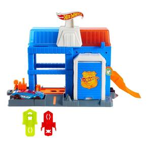 Hot Wheels City – Torre da Polícia do Centro O conjunto Hot Wheels City Downtown Police Tower conta com 3 níveis de diversão e recursos interativos que estimulam a criatividade e a brincadeira narrativa, incluindo rampas, desviadores e detalhes realistas de pista. Destaques do Produto - Torre expansível com três andares - Inclui 1 carrinho em escala 1:64 - Elevador acionado manualmente pelas crianças - Duas opções de saída no segundo andar: - Rampa lateral em alta velocidade - Desviador com placa de pare que leva à garagem - Janelas translúcidas vermelhas e azuis no último andar, ideais para vigilância e armazenamento
