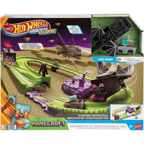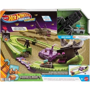 Hot Wheels RacerVerse Minecraft Pista com Steve Armadura de Diamante e Dragão Ender Encare o desafio final do Minecraft com a incrível pista Hot Wheels RacerVerse Aventure-se em The End o lendário nível do jogo com o Steve em armadura de diamante em seu carrinho de mina die-cast. Enfrente o poderoso Dragão Ender giratório e derrote esse chefe icônico em uma corrida cheia de ação Principais destaques: Inclui veículo exclusivo do Steve com Armadura de Diamante da linha Hot Wheels RacerVerse em miniatura die-cast. Dragão Ender com movimento realista: gire a manivela para ativar o mecanismo que faz o dragão balançar desafiando cada volta. Desafie o tempo: lance o Steve com o lançador especial e faça acrobacias para pular sobre o vão no momento certo desviando do dragão em movimento Contador de voltas interativo: a cada volta completada o contador simula um ataque com flecha contra o Dragão Ender. Vitória épica: após 6 voltas o dragão é derrotado e se vira simulando a vitória de Steve Indicado para crianças a partir de 4 anos e fãs de Minecraft de todas as idades. Ideal para presentear ou colecionar essa pista traz à vida o universo do Minecraft com a adrenalina das corridas Hot Wheels. Uma combinação perfeita de ação aventura e criatividade para os pequenos construtores Conteúdo da Embalagem:Inclui veículo exclusivo do Steve com Armadura de Diamante da linha Hot Wheels RacerVerse em miniatura die-cast. ReferênciaJFP34 Regulamentção Certificação Inmetro: 006359/2021 : 3 meses defeito fabricação Homologação Inmetro: IP-BRI-7538/2018-02 Ean: 194735302994