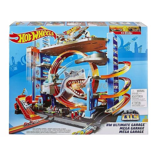 Brinquedo Hot Wheels Ultimate Mega Garage da Mattel FTB69 Hot wheels mega garagem com uma reviravolta enorme e um ataque surpresa de tubarões. Desafie seus limites com a pista e veículo hot wheels city mega garagem da Mattel. Construa todo um percurso novo e cada vez mais irado de Hot Wheels com este conjunto de pista e veículo. Teste os limites dos seus carrinhos Hot Wheels com o desempenho super potente da linha track builder system. Adicione ainda mais velocidade nas corridas e chame os amigos para uma competição. Construa percursos longos, rápidos, use loopings, curvas e muito mais com os conjuntos de Hot Wheels. Requer montagem por um adulto. Contém: 2 veículos inclusos , lacrado com e . INMETRO: CE-BRI/NMAC-00128-18ANM300/2002 Ean: 0887961639902
