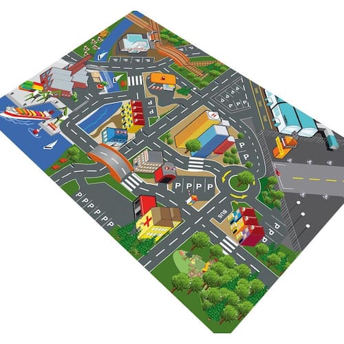 Diferentemente de tapetes peluciados ou emborrachados, nossa pista é projetada para proporcionar uma superfície lisa e durável, ideal para uma experiência de brincadeira suave e autêntica.