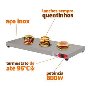- Ideal para manter alimentos aquecidos em buffets;