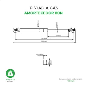 Esses pistões a gás com uma força normal de 80n são utilizados em várias aplicações, dependendo do projeto e da necessidade específica. É importante observar as especificações técnicas do pistão, como seu tamanho, capacidade de carga e curso, para garantir que ele seja adequado para a aplicação desejada.