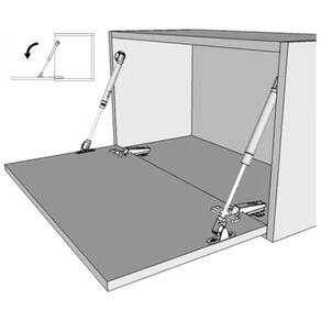 O pistão a gás inverso é utilizado em portas de armários basculantes, na qual ele auxiliar a abertura para baixo, tornando-se mais suave