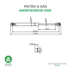 Pistão a gás força normal 120n - prata Marca: Não Informado