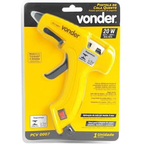 Pistola de Cola Quente PCV 0007 Vonder: a ferramenta ideal para seus projetos de colagem! Com a qualidade e confiabilidade da marca Vonder, esta pistola de cola quente é perfeita para trabalhos em papel, plástico, madeira e cerâmica. Seu design ergonômico e leve, pesando apenas 200g, garante conforto e praticidade durante o uso. A haste de apoio mantém a pistola em pé, evitando o contato do bico com a superfície de trabalho, proporcionando segurança e facilidade de manuseio. A pistola de cola quente Vonder é equipada com uma potência de 20W e opera em uma temperatura máxima de 170C, garantindo uma colagem eficiente e rápida. O tempo de aquecimento é de apenas 5 minutos, permitindo que você inicie seus projetos sem demora. Compatível com bastões de cola de 8mm de diâmetro, é ideal para colagens precisas e duradouras. Além disso, a pistola é certificada conforme as normas do Inmetro, assegurando qualidade e segurança.