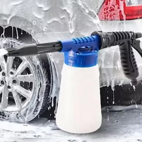 Anexe o canhão de lavagem de carros à mangueira, adicione sabão líquido e borrife seu carro sujo. O controle de espuma ajustável infunde grandes quantidades de ar no sabão e na água, criando um manto de espuma espessa, semelhante a um lava-jato profissional.