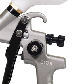 A BC76-13 tem um excelente desempenho na aplicação de tintas e vernizes de diferentes viscosidades, sendo particularmente eficaz na aplicação de primers, que exigem um acabamento fino e uniforme. Sua caneca de 600 ml em polipropileno é resistente e fácil de limpar, oferecendo a capacidade ideal para a maioria dos trabalhos profissionais.