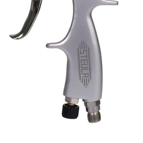 Com um design robusto e leve, a pistola possui um corpo em alumínio com acabamento cromado, proporcionando durabilidade e resistência. Além disso, sua caneca é feita de polipropileno, garantindo leveza e facilidade de manuseio. O bico e a agulha são confeccionados em aço inoxidável, o que assegura maior durabilidade e resistência à corrosão.