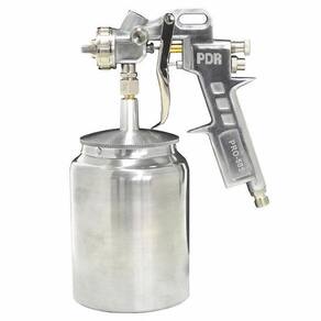 Especificações técnicas: Tipo: sucção Bico original: 1,5 mm Volume da caneca: 1000 ml Pressão de trabalho: 45 a 60 psi Entrada de ar: 1/4. Consumo de ar médio: 6 pcm.