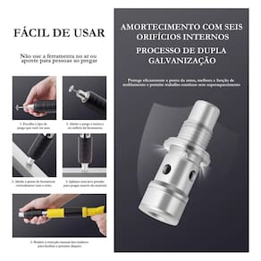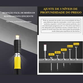 - Versatilidade incomparável: Uma única ferramenta para fixação, rebites e finca-pinos. Ideal para madeira, drywall, e até materiais mais densos.