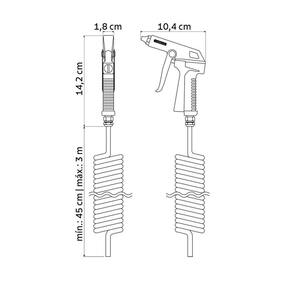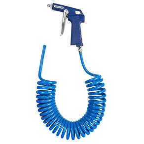 Acionamento por gatilho. Empunhadura ergonômica. Corpo produzido em nylon. Ponteira e gatilho metálico. Inserto de entrada de ar em latão. Acompanha tubo pneumático em espiral 8 mm x 3 m. Acompanha conexão para tubo 8 mm. Entrada de ar: 1/4 NPT (fêmea). Pressão máxima de trabalho: 10 bar. Nível de ruído: 85 dBA.