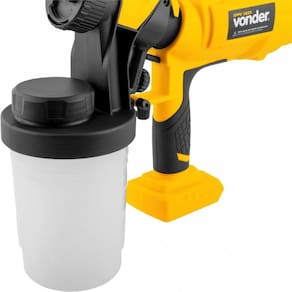 Este equipamento utiliza um modelo de bateria que pode ser intercambiável (não acompanha), ou seja, uma bateria que é compatível com outros modelos de ferramentas a bateria VONDER. Por isso, em sua próxima compra de ferramenta a bateria VONDER, procure um modelo que comece com a referência I, ou que esteja identificado com o selo Bateria Intercambiável VONDER. Desta forma, você garante modelos mais econômicos, sem a necessidade de aquisição de novas baterias e carregadores para uso em seu equipamento. Além de mobilidade e praticidade, pois dispensa o uso de compressores, reguladores, mangueiras extensas, entre outros acessórios ou equipamentos complementares. Possui jato com 3 opções de ajuste (redondo, vertical e horizontal), chave de ajuste do volume de tinta e sistema HVLP (alto volume e baixa pressão), proporcionando maior rendimento e menor desperdício de tinta.