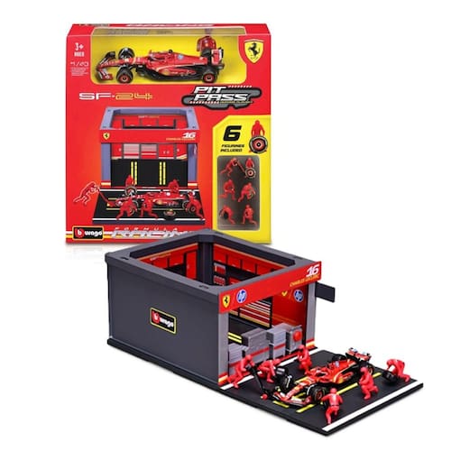 Reviva toda a emoção das corridas de Fórmula 1 com o incrível Pitstop Ferrari da Burago! Este conjunto reproduz com riqueza de detalhes a área de parada da equipe Ferrari, proporcionando uma experiência realista e cheia de ação para fãs e colecionadores. O kit acompanha o carrinho oficial Ferrari em escala 1:43, inspirado no carro do piloto Charles Leclerc nº 16, com acabamento fiel, pintura detalhada e design esportivo que representa perfeitamente o mundo das pistas. Ideal para brincar, colecionar ou decorar. Para deixar a brincadeira ainda mais completa, o conjunto vem com 6 bonecos, representando a equipe de pitstop, permitindo recriar trocas de pneus e momentos emocionantes das corridas.