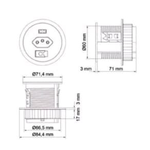 PIX TOMADA DE EMBUTIR 2P+T + 1 USB + PASSA FIO 3.650.4350