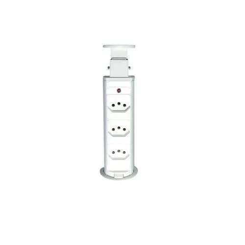 TORRE DE EMBUTIR MULTIPLUG RETRÁTIL C/ 3 TOMADAS PIX - DE BANCADA - MÁX 16A / 240V - BRANCO - BIVOLT