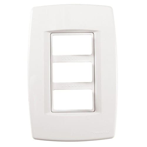 Placa 3 Postos - 4x2 Tramontina Placa 3 postos - 4x2 Tramontina - As placas da linha Trii são fabricadas em termoplástico na cor branca. O sistema é modular, em duas peças: placa e suporte, com gradual ajuste entre ambos, proporcionando perfeito acabamento da placa com a parede. Possuem furo oblongo para facilitar a fixação e a regulagem da placa à parede. A fixação não é aparente. A linha Trii é composta por 23 diferentes configurações de placas, sendo 9 configurações nos modelos 4x2 e 14 configurações 4x4. Acompanham suporte e parafusos para a instalação. Orientações.ObservaçõesA instalação e segurança: É importante que o produto seja instalado por profissional habilitado. Antes de instalar, desligue a energia elétrica.Características GeraisEAN137891435032369DUN1417891435032366NCM3925.90.90Peso Líquido0,0340 kg.Peso Bruto0,0370 kg.Metragem0,000150 m.Dimensões Embalagem (Compr. X Larg. X Alt.)150x 100x 10 mm.Dimensões Produto (Compr. X Larg. X Alt.)120x 80x 10 mm.Cor 1FFFFFF Hexa