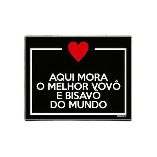 Especificações Técnicas Marca: Legião Nerd Tipo: Decorativa Mensagem: Aqui Mora Melhor Vovô E Bisavô Do Mundo Cor: Preta Medidas: 18cm x 23cm Conteúdo: 5un Garantia: 12 meses