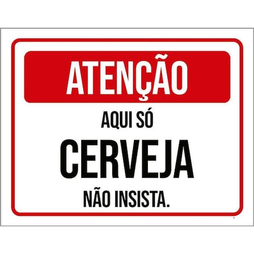 Placa Atenção Aqui Só Cerveja Não Insista 36x46 - Informações do Produto: Placas decorativas fabricadas com poliestireno de alto impacto PSAI de 2mm e adesivo vinil automotivo de alta performance. - Medidas: 36cm x 46cm - Fixação: Todas as placas possuem adesivo dupla face para aplicação em qualquer tipo de superfície lisa. de 12 meses e disponibilidade imediata. Marca: Não Informado