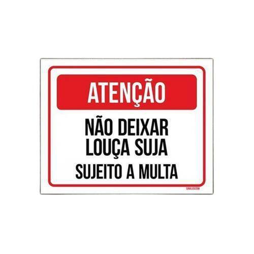 Placa Atenção Não Deixar Louça Suja Sujeito A Multa 36x46 - Decoração e Organização para sua Cozinha