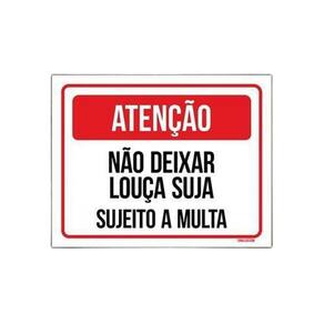 Placa Atenção Não Deixar Louça Suja Sujeito A Multa 36x46 - Decoração e Organização para sua Cozinha