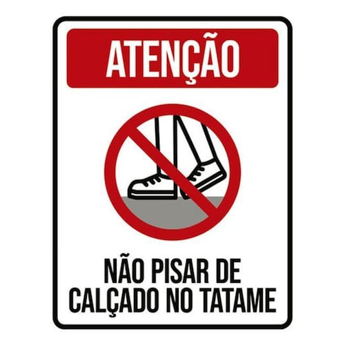 Placa atenção não pisar de calçado no tatame 18x23 Não precisa furar, não empena e nem perde a cor no sol, pode ser rebitada e não rasga - informações do produto: Placas decorativas fabricadas com poliestireno de alto impacto psai de 2mm e adesivo vinil automotivo de alta performance. - medidas: 18cm x 23cm - fixação: Todas as placas possuem adesivo dupla face para aplicação em qualquer tipo de superfície lisa. de 12 meses e disponibilidade imediata. Marca: Não Informado Ean: 7793659930677