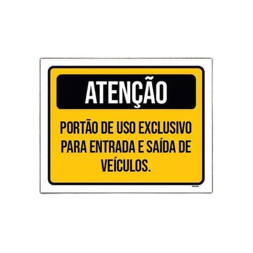 Placa Atenção Portão Exclusivo Entrada Saída Veículos 18x23 - Informações do Produto: Placas decorativas fabricadas com poliestireno de alto impacto PSAI de 2mm e adesivo vinil automotivo de alta performance. - Medidas: 18cm x 23cm - Fixação: Todas as placas possuem adesivo dupla face para aplicação em qualquer tipo de superfície lisa. de 12 meses e disponibilidade imediata. Marca: Não Informado Ean: 7895779489117