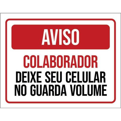 Placa Aviso Colaborador Deixe Celular Guarda Volume 36x46 - Informações do Produto: Placas decorativas fabricadas com poliestireno de alto impacto PSAI de 2mm e adesivo vinil automotivo de alta performance. - Medidas: 36cm x 46cm - Fixação: Todas as placas possuem adesivo dupla face para aplicação em qualquer tipo de superfície lisa. de 12 meses e disponibilidade imediata. Marca: Não Informado