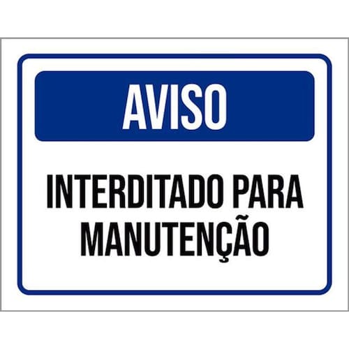 Placa Aviso Interditado Para Manutenção 36x46 Placas de sinalizaço fabricadas com poliestireno de alto impacto PSAI de 2mm e impressão ultravioleta.