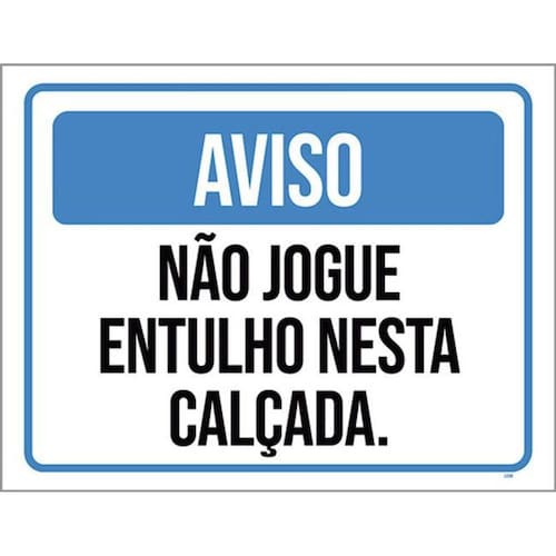 Placa Aviso Não Jogue Entulho Nesta Calçada Azul 36x46 Placas de sinalizaço fabricadas com poliestireno de alto impacto PSAI de 2mm e impressão ultravioleta.