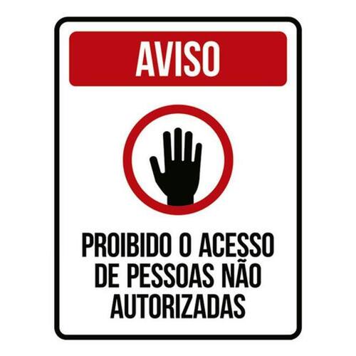 Placa Aviso Proibido Acesso Pessoas Não Autorizadas 36x46 Placas de sinalizaço fabricadas com poliestireno de alto impacto PSAI de 2mm e impressão ultravioleta.