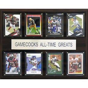 Oito dos maiores Carolina do Sul galos estrelas são apresentadas neste 12 " x 15 " placa de cerejeira. Os leitores são apresentados em genuína licenciado figurinhas de diferentes fabricantes, tornando esta uma peça perfeita para exibição em um escritório, sala de recreação, ou qualquer local para um fã para desfrutar. Os cartões estão protegidos por superior high-clarity acrílico lente capas e firmemente preso ao placa com brass-type parafusos para um visual polido. Todos os cartões são facilmente substituível com os da sua própria coleção. Esta peça de longa duração é orgulhosamente produzido nos EUA Jogo de válvulas à Carolina do Sul dos grandes jogadores. Oito licenciado, figurinhas autêntico. 12 x 15 polegadas placa de cerejeira. Total cobertura de lente para proteger os cartões. Perfeita para exibir em um escritório, sala de recreação ou quarto.