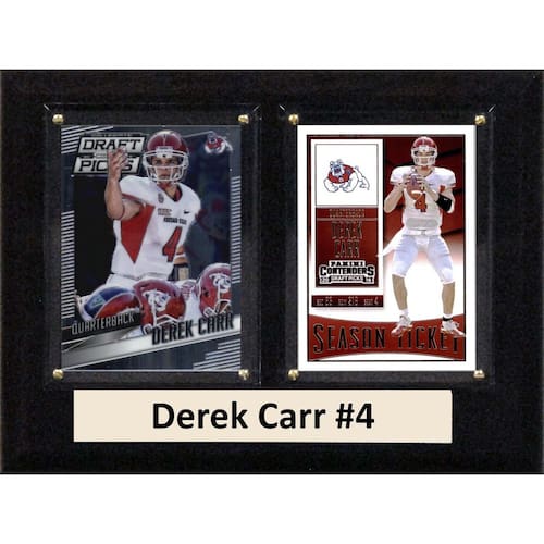 Derek Carr é festejados em uma placa de madeira 6 " X8 "cereja com um ncaa-licensed colecionáveis e uma placa de identificação gravada. superior, lente de acrílico high-clarity cobre firmemente preso ao placa com parafusos brass-type protege o colecionáveis. O visual polido contribui para um bem-feito pedaço de longa duração, perfeita para exibir em um escritório, sala de recreação, ou qualquer local para um fã para desfrutar. É produzida e montada com orgulho nos EUA.