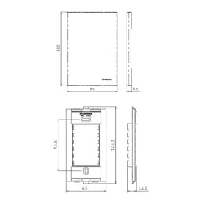 Dimensões AxLxP (mm): Placa: 125x85x8,5 - Suporte: 125,3x65x14,6